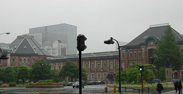 竣工当時の東京駅(前庭より) 1889年(明治22年)に神戸まで全通した官設鉄道の新橋駅と、私鉄・日本鉄道の上野駅を結ぶ高架鉄道の建設が東京市区改正計画によって立案され、1896年(明治29年)の第9回帝国議会でこの新線の途中に中央停車場を建設することが可決された。施工は大林組が担当。 日清戦争とその後の日露戦争が終わった1908年(明治41年)から建設工事が本格化し、1914年(大正3年)12月20日に開業した。中央停車場は皇居(宮城)の正面に設定され、「東京駅」と名付けられた。