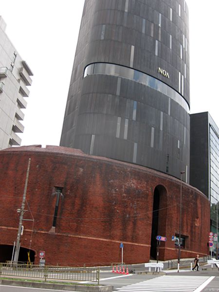 竣工当時より、ノアビルはその特異なインパクトで街の景観そのものに変化を与え、東京・飯倉の新しいランドマークタワーとして注目を集めました。外観下層部は赤レンガで作られ、上層部は硫酸銅仕上げの楕円筒形、内装は窓を少なくし、石で静かな空間を構成し、かつ豊かさを取り入れられています。
