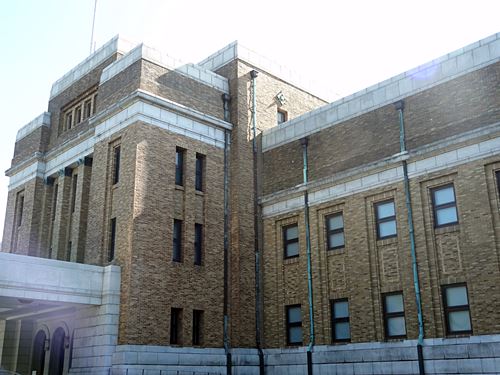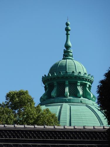 設計は、J.コンドルの弟子で、東宮御所(現在の迎賓館)なども手がけた宮廷建築家の片山東熊。中央と左右に美しいドーム屋根をいただき、上層部の外壁面には製図用具、工具、楽器などをモチーフにしたレリーフがあります。