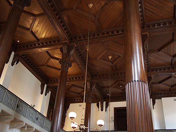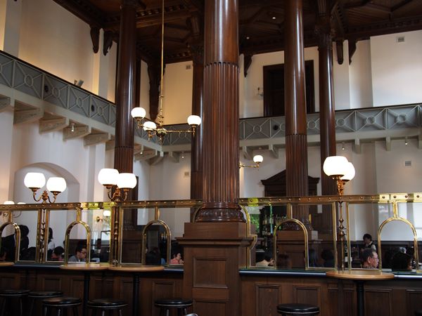 1894(明治27)年の三菱一号館創建当時銀行営業室として利用された空間を復元した。