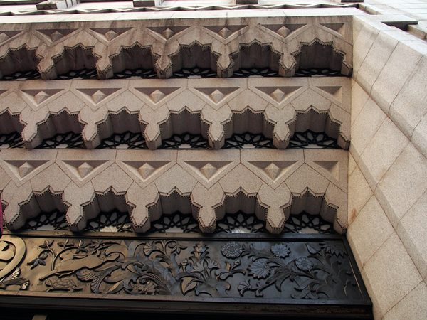 本物件はゴシック・リヴァイヴァルを基本に、幾何学的なアールデコ・スタイルの装飾が散りばめられている。外装、内装ともに壮麗な装飾で埋め尽くしながら、仰々しさを感じさせない感覚の鋭さは素晴らしい。