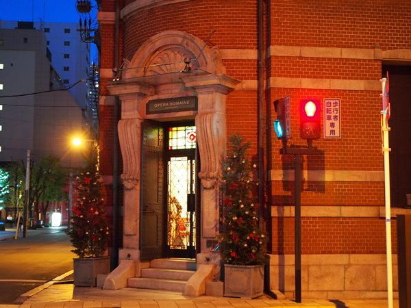 当初は、尖塔を載せた円筒形の玄関を持つ華やかで瀟洒な外観でした。オペラ・ドメーヌ高麗橋は、 明治時代後期に煉瓦建築のブームを巻き起こした、建築界の巨匠、辰野金吾によって設計されました。 竣工1912年。 赤煉瓦の外壁に白い石材でボーダーラインを描いた端正なデザインは『辰野式』とも呼ばれ、明治以降の建築に大きな影響を与えています。