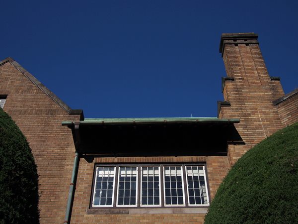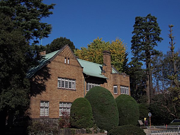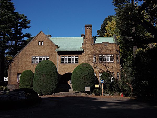 武蔵野の面影をよく留める丘陵の隅にこの建物は建っている。鉄筋コンクリート造2階建スクラッチタイル貼りの瀟洒な建物で、イギリスの郊外住宅のスタイルを濃厚に表現している。