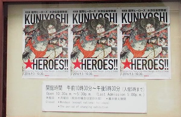 外国人の浮世絵ファンが多いこともあって、ポスターの見出しはローマ字です。収集家の太田清蔵が人目にさらさなかった理由がわかるような気がします。刷りあがった絵が新鮮な色を保っています。何度も光にさらせば、一回ごとに、色がさめてしまいます。