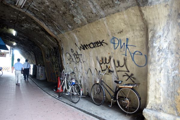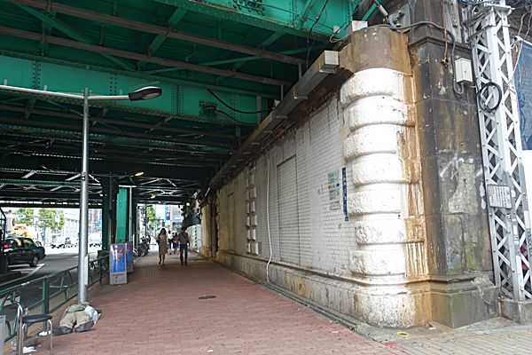 二葉橋ガードについてお願い、とJR東日本からの掲示板があります。 「自転車が衝突したのを見たかたは、至急お知らせください。」。おそらくあまり強靭ではないレンガの橋脚が傷ついたばあい、列車の運行に支障がでるのではないでしょうか。頻繁に往来する過密ダイヤにかろうじて持ちこたえている、明治の名残りです。