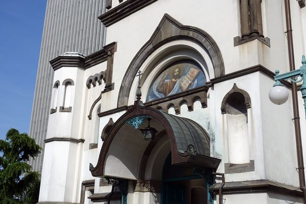 この聖堂は明治17年3月に起工し、工期7年を以て同24年2月に完成したもので、設計者は、ロシア工科大学教授しチュールポフ氏、工事監督は、英国人コンドル博士です。日本最大のビザンチン式建造物として知られております。(案内板より)1962年 東京復活大聖堂、国の重要文化財に指定される。