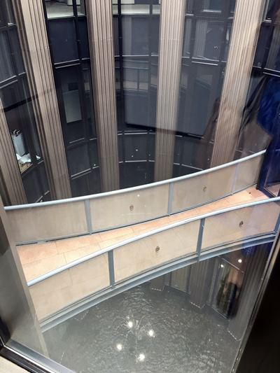 井の頭線神泉駅から徒歩約5分。閑静な高級住宅街にあります。外観は撮影できますが、内部は禁止されて残念です。建物中央にはガラスで囲まれた吹き抜けの空間があり、地下2階を見下ろすと噴水があります。白井晟一の名前を知らなかったころ、神谷町付近にある「ノアビル」の異様な雰囲気に目が留まり、すぐにカメラを向けたことがありました。それが作品の一つと知ったのは、実現しなかった原爆堂の考案者だと分かった後でした。感性というより「観念を構成する」ことが先にあるような建築に思えます。