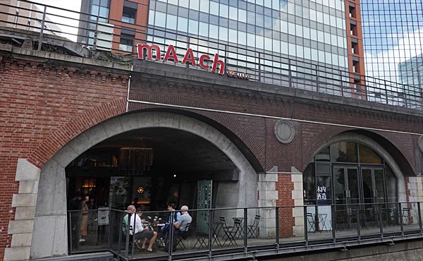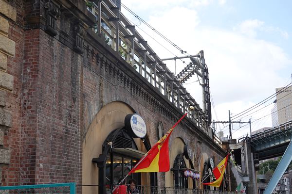 駅ホーム下のアーチが利用されて、店のインテリアに。