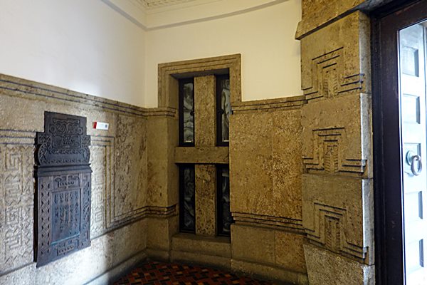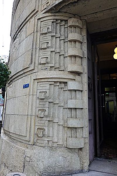 ■昭和2(1927)年 昭和2(1927)年、南米マヤ・インカの装飾を纏った芝川ビルが竣工します。 芝川ビルを建てた芝川又四郎は、かねてから店を不燃性の建物に建替えたいと思っていました。そんな折、大阪倶楽部において建築家の片岡安のスピーチを聞き、鉄筋コンクリートが耐震・耐火性に優れていることを知り、鉄筋コンクリートへの建て替えを決意したと言います。こうして建設された芝川ビルは、耐震・耐火性に細心の注意が払われており、その意気込みは、現在も建物の随所に見ることができます。