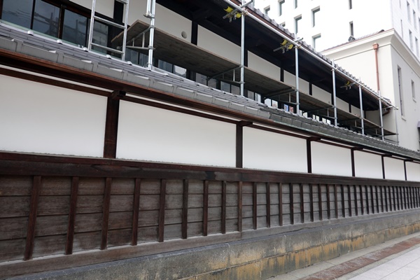 堰堤には盛り土をして保育室や老化と同じ高さにし、安全性と広さを確保しています。園舎周りには高塀を巡らせ、南正面には「塀重門」という格式の高い形式の門を置いています。そのほかにも通常の学校建築には見られない質の高い建築様式が使われています。