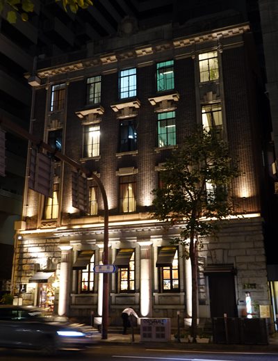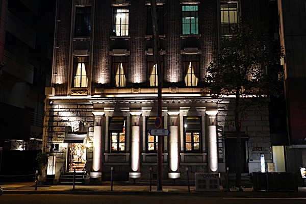 地下鉄北浜駅付近は、大阪証券取引所ビルをはじめとして、金融の中心であったところです。御堂筋ほど人通りが多くなく、落ち着いて、夜景が美しい街です。土佐堀川沿いは観光客向けのレストランが多いのですが、御堂筋との間にある通りには、気の利いた食事処が多くあります。こちらは暗くなるとお店が見えるようになります。