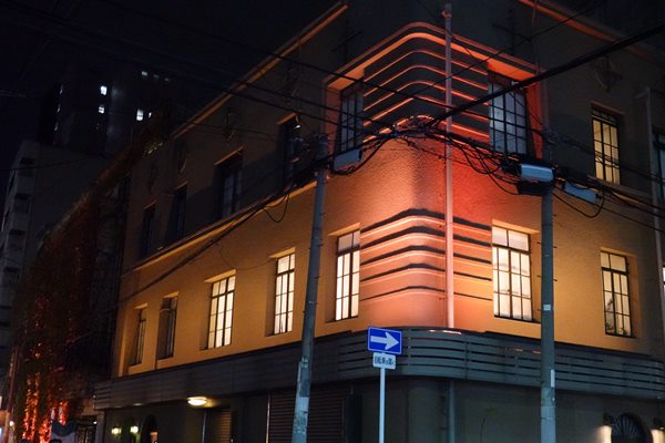 角地に建ち,外観はコーナーを隅丸とし,3階の窓上に飾り丸窓,交差点に面する北西隅の2,3階に水平リブ状の飾り線を付けるなど変化に富んだ外観を見せる。