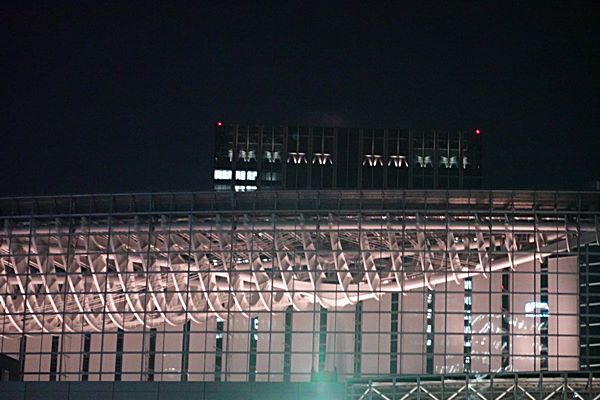 銀座一丁目側から撮影。夜になって鉄骨が透き通って見えます。
