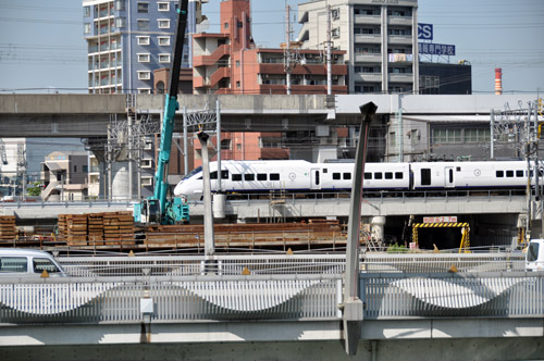 紫川を渡る列車。上段は新幹線、下は鹿児島本線と日豊本線が通っています。